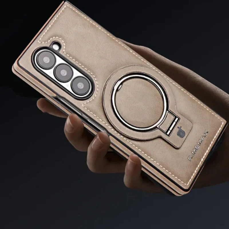 New Arrival-Luxury Leather Invisible MagSafe Stand Protective Shell for Samsung Z Fold 6/5/4/3