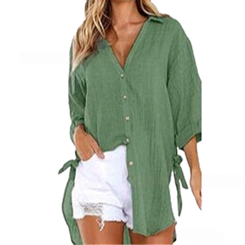 CÓMODO CUELLO EN V - Esta camisa presenta un favorecedor escote en V, que ofrece un look relajado y elegante, ideal para cualquier ocasión, ya sea informal o semiformal. El diseño de cuello en V realza el escote, lo que la convierte en una excelente opción para climas cálidos o para combinar con otras prendas.