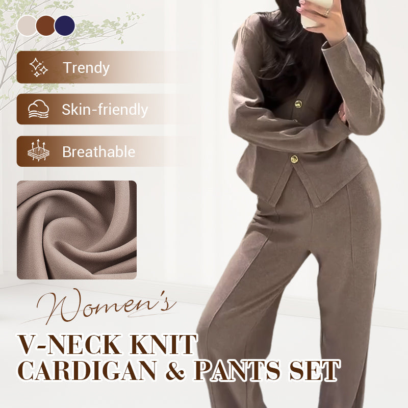 Package Includes: 1 * Women's V-Neck Knit Cardigan & Pants Set