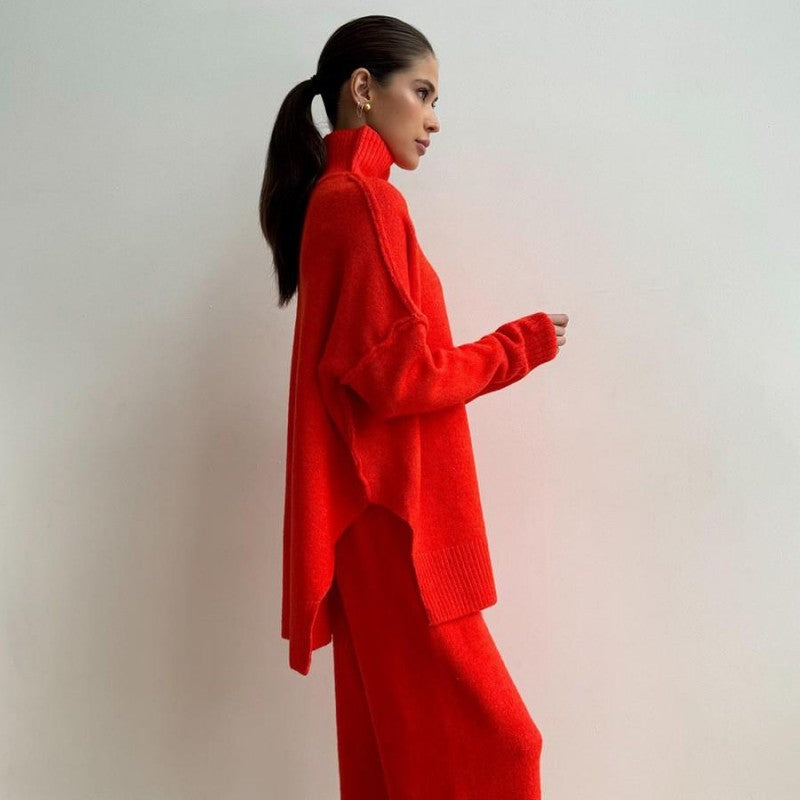 GEMAKKELIJK TE LAGEN: Deze gebreide set is perfect om te dragen in laagjes, waardoor het een geweldige keuze is voor wisselvallig weer. De trui kan worden gecombineerd met jassen of mantels, terwijl de wijde broek kan worden gestyled met laarzen of sneakers voor een trendy, relaxte sfeer.