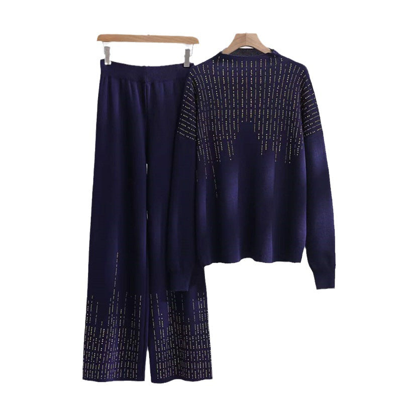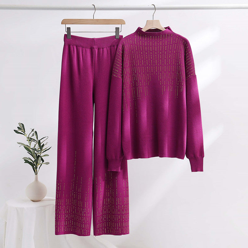 ✨New Arrivals✨Casual Knitted 2-Piece Set with Rhinestone Decor