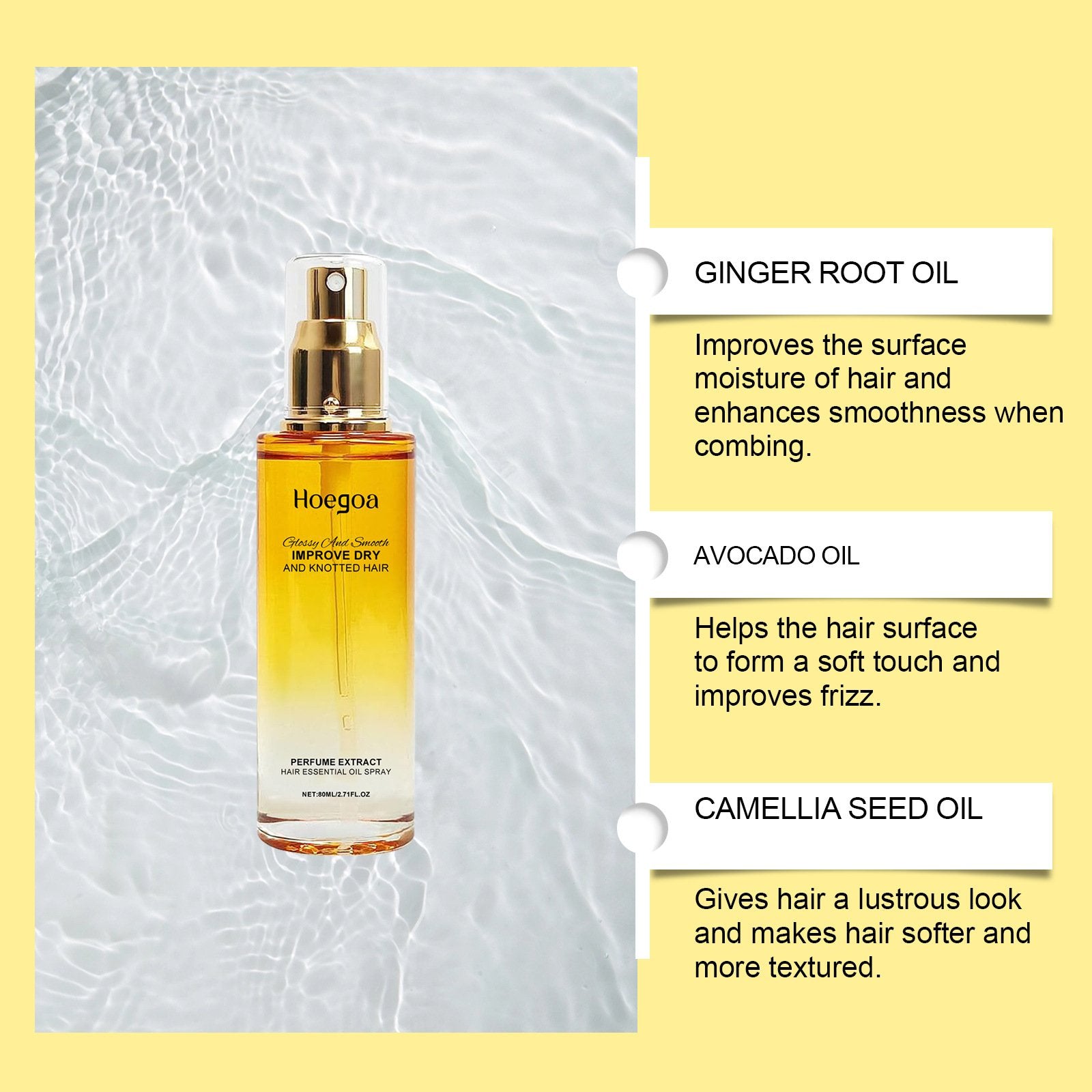 Product descriptionThe Hoegoa 80ml Hair Care Essential Oil Spray is the perfect solution for those who want soft, manageable, and anti-static hair without washing it every day.·Wash-Free: With this essential oil spray, you don't need to worry about washing your hair every day. It will keep your hair looking clean and fresh without the need for water.·Softens Hair: The natural ingredients of Hoegoa in this spray will soften your hair and make it more manageable. This makes styling a breeze!·Anti-Static Formula: Say goodbye to frizzy, staticky hair with this anti-static formula. You'll be able to enjoy smooth, sleek locks all day long.The key ingredient in this essential oil spray is Hoegoa - a blend of natural ingredients that work together . With regular use of this product, you'll notice a difference in how healthy and vibrant your locks look!In conclusion, if you want wash-free softness with an added bonus of anti-static formula for smoothness then look no further than the Hoegoa80ml Hair Care Essential Oil Spray - perfectly blended with natural