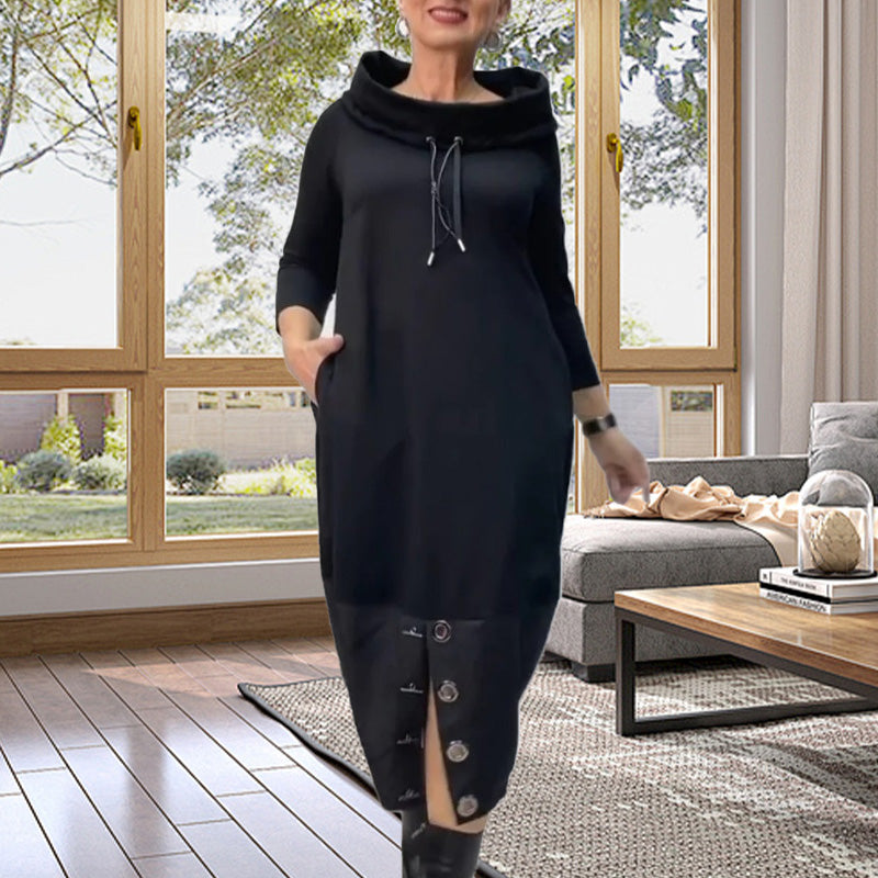 Package Includes:1*Drawstring Sweatshirt Dress with Patchwork Slit & Button