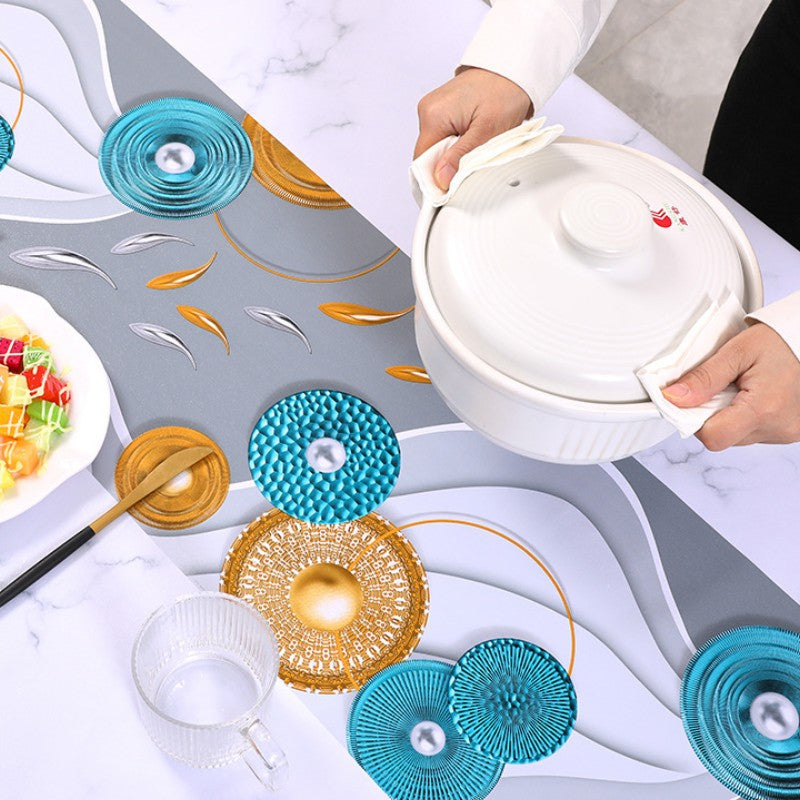 This tablecloth is more than just a decorative piece; it's a practical and stylish addition to any home that offers protection and peace of mind. Crafted from high-quality PVC material, it drapes beautifully over your table, instantly elevating your dining experience. Its heavy material is not only pleasing to the eye but also incredibly easy to wipe clean, waterproof and oil-proof, making it a breeze to maintain.