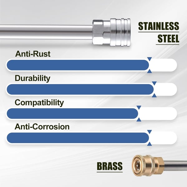 • 【Multi-option connector】this versatile tool features a unique design with two different connector ends : a longer one for the pressure washer nozzle and a shorter one for the snow foam lance . This strategic arrangement ensures unobstructed water flow when using the nozzle, even with the foam dispenser attached.