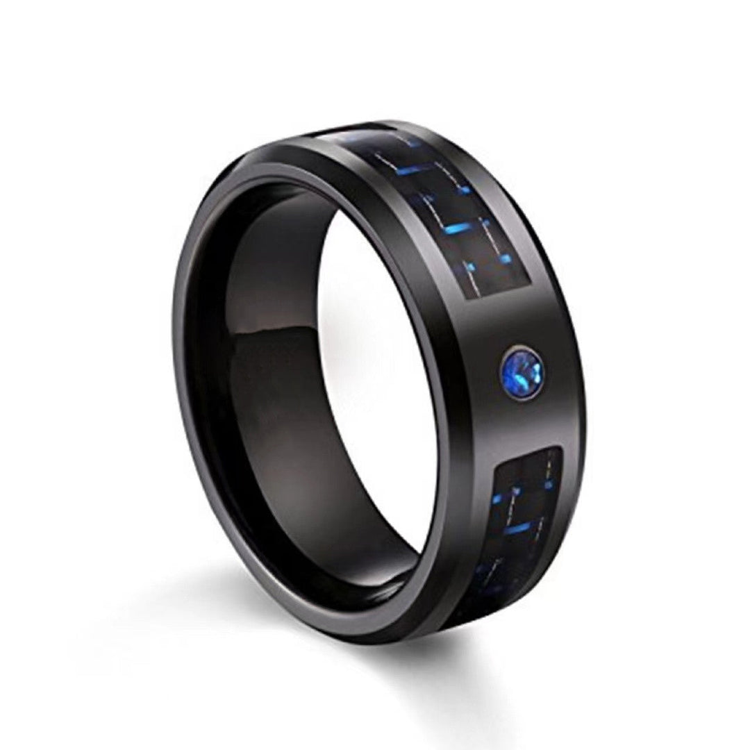 SCRATCH RESISTANT & DURABLE MATERIALS - Crafted with high-quality titanium steel, the outer ring boasts exceptional scratch resistance and durability where the carbon fiber inlay adds a unique touch to the ring, creating a visually stunning contrast for the rings.