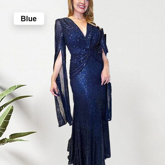 Package Include: 1* Sequined V-Neck Evening Dress with Pleated Hem