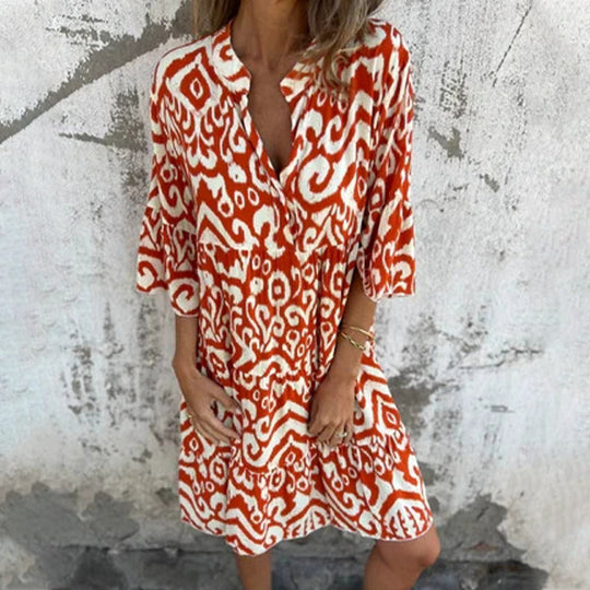 Package Includes:1*V-Neck Printed Three-Quarter Sleeve Dress