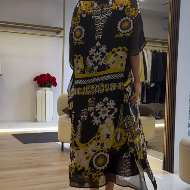 STYLISH MESH KAFTAN OVERLAY – This dress features a chic, see-through mesh Kaftan overlay that adds an elegant touch to the simple slip dress, perfect for a breezy, bohemian vibe.
