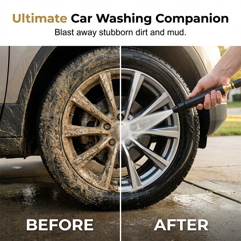 ULTIMATE CAR WASHING COMPANION - Transform your garden hose into a powerful car washing tool. The concentrated direct spray easily removes dried mud, road grime, and soap suds for a spotless finish.
