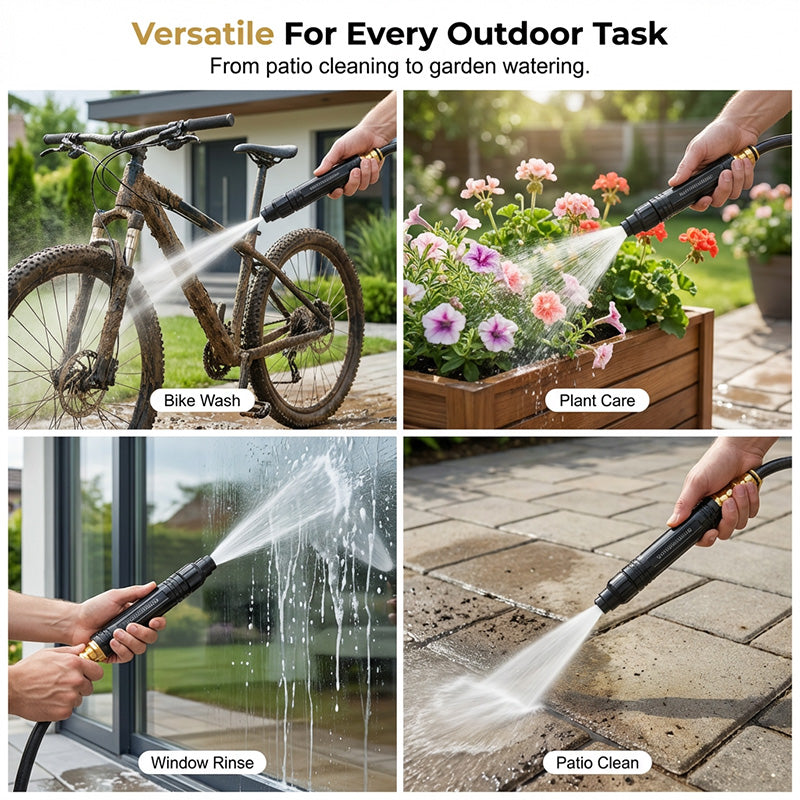 VERSATILE FOR EVERY OUTDOOR TASK - One nozzle for all your outdoor chores. Whether you are power washing the deck, rinsing the driveway, or gently watering the flower beds, this tool adapts perfectly.