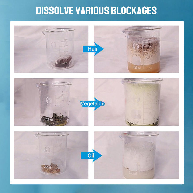 * Güçlü Fonksiyon: Saç, kağıt, sabun artığı, sebze, meyve, yemek artıkları, gres ve organik maddeler gibi boru tıkanıklıklarını kısa sürede çözer.